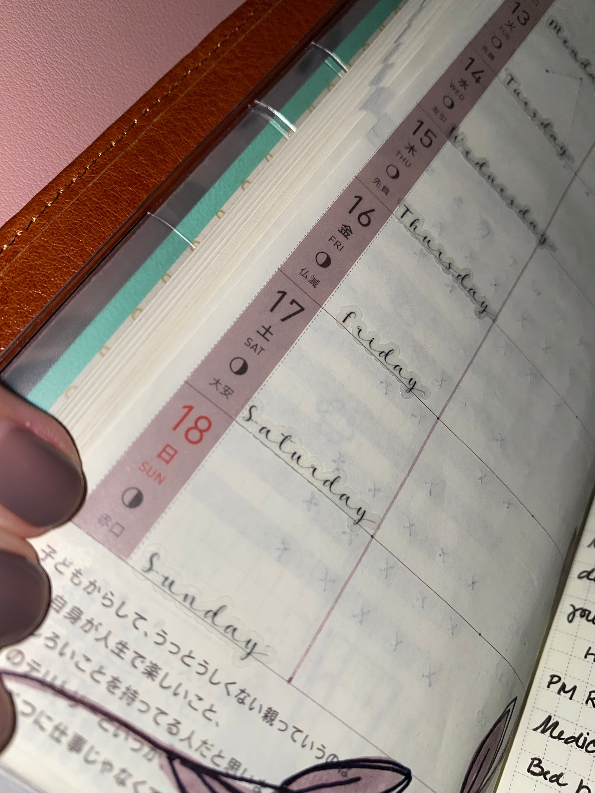 Functional stickers for use in any planner - these days of the week sticker are very small, so they work well in the Hobonichi Weeks (or any planner with a small layout)